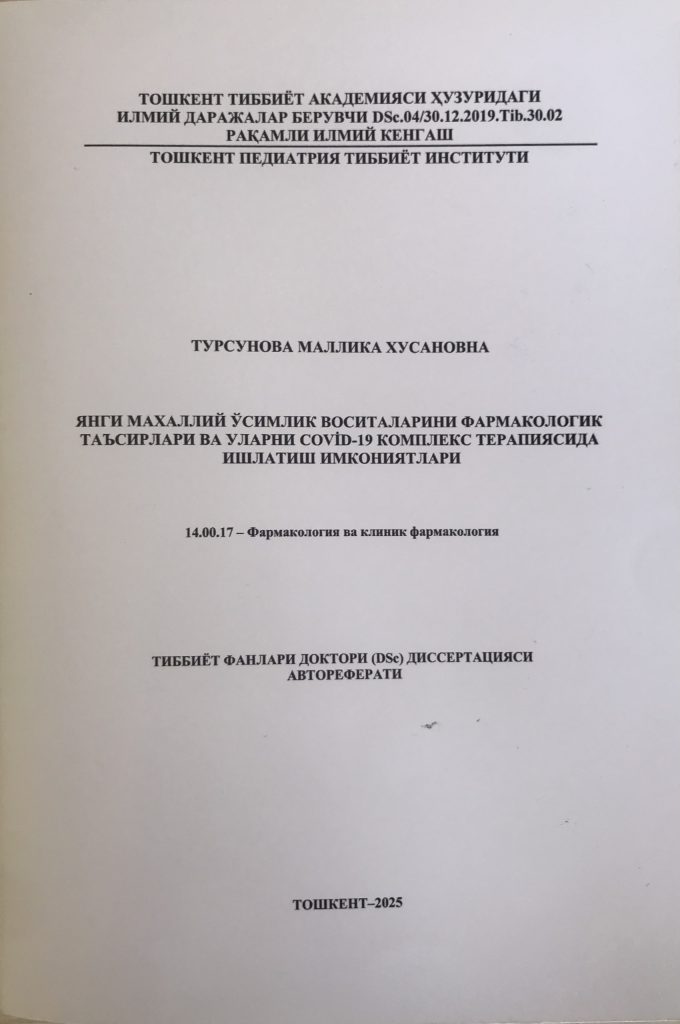2005 yilining dekabr oyida kafedra mudiri lavozimiga ToshPTIning Ilmiy Kengashi tomonidan A.A.Abdusamatov saylandi va 2012 yilning noyabr oyigacha kafedra mudiri lavozimida faoliyat ko’rsatdilar. 2011yil 1 avgustdan Vazirlar Mahkamasi buyrug’i bilan ToshPMI Ilmiy ishlar prorektori lavozimiga tayinlandilar va 2012 yilning noyabr oyigacha Ilmiy ishlar prorektori lavozimida faoliyat ko’rsatdilar. 2008 yil dekabr oyida 3ta o’quv-uslubiy qo’llanma “Farmakologiya” fanidan amaliy mashg’ulotlar tibbiyot oliy o’quv yurtlari 3 kurs talabalari uchun o’quv-uslubiy qo’llanma; Metodicheskaya rekmendastiya k prakticheskim zanyatiyam po farmakologii, dlya studentov 3go kursa medistinskix VUZov; Farmakologiya fanidan amaliy mashg’ulotlar uchun o’quv-uslubiy qo’llanma, Tibbiyot oliy o’quv yurtlari III kurs talabalari uchun. O’quv-uslubiy qo’llanmalar chop etildi