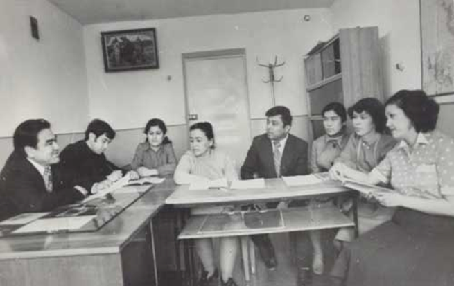 Kafedra mudiri dotsent, O.U.Ubaydullayev rahbarligidagi kafedra majlisi. 1979-1980 yillar